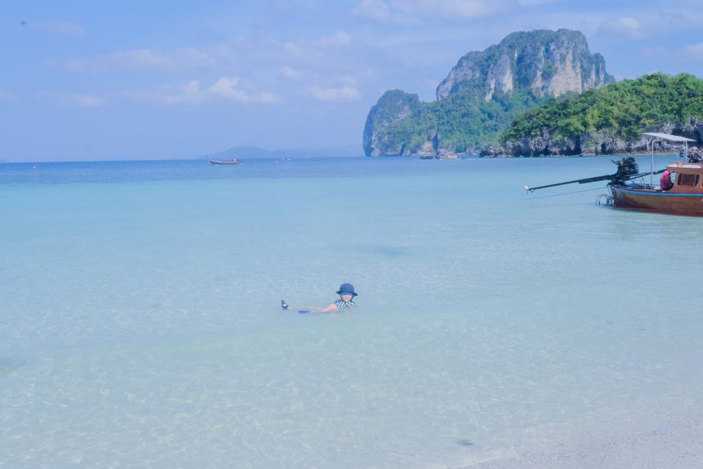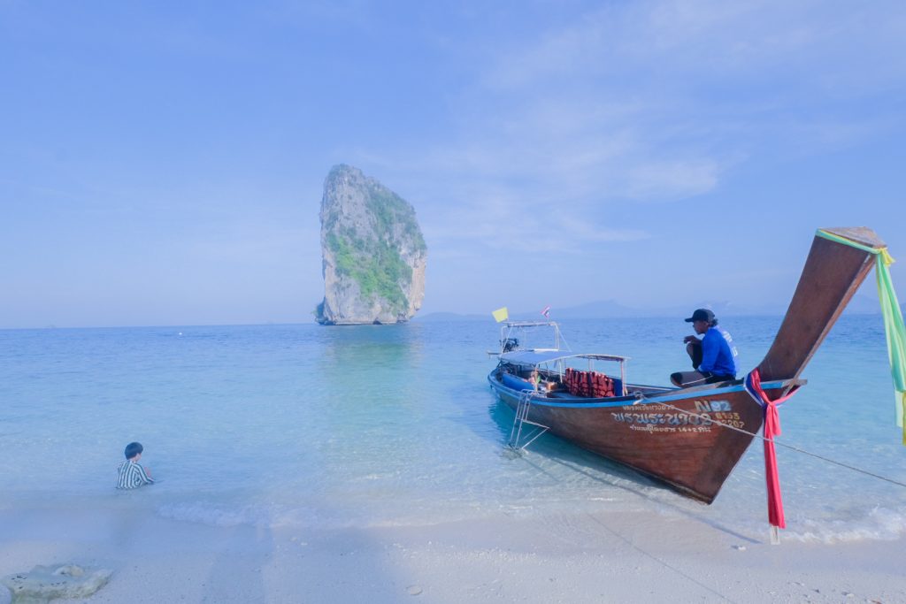 少し早く着いたなぁと思っていると、ボートのおじさんが近づいてきて、窓口と同じ料金の2000B+入島税大人200B 子ども100B 3時間の貸切