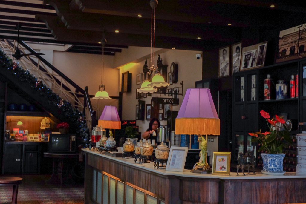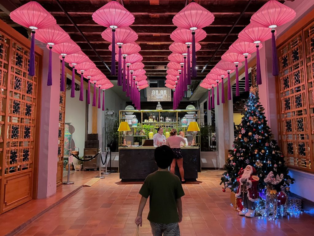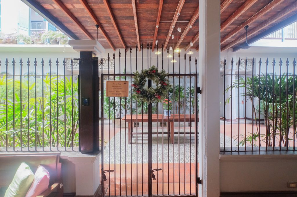 マレーシアのペナンから建築家を呼び寄せて作られた、シノポルトギース様式の美しい建物です。この様式の建物は風水をとり入れているため、中庭があって、風通しがよく、館内は涼しくなっています。